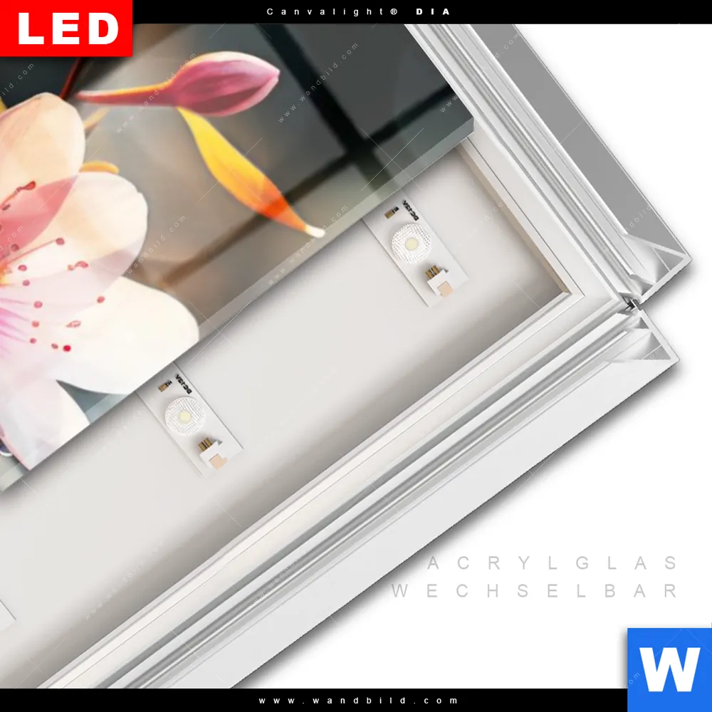 LED-Glasbild mit austauschbarem Acrylglas-Druck (Wechselbild)