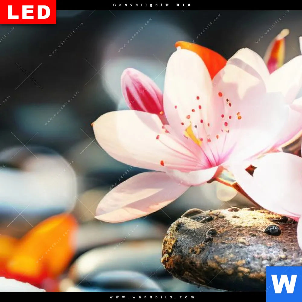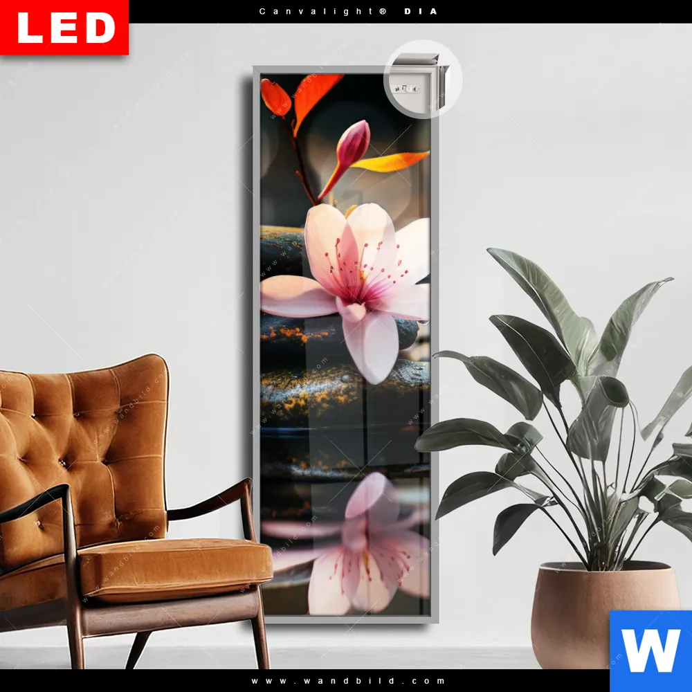 Canvalight® DIA Leuchtbild | Zen Steine mit Blumen | Schmal