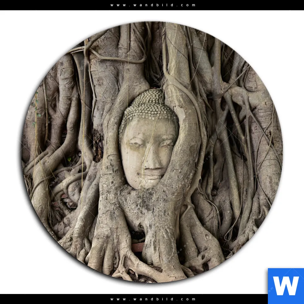 Alu-Dibond Bild | Buddha in Baumwurzeln | Rund