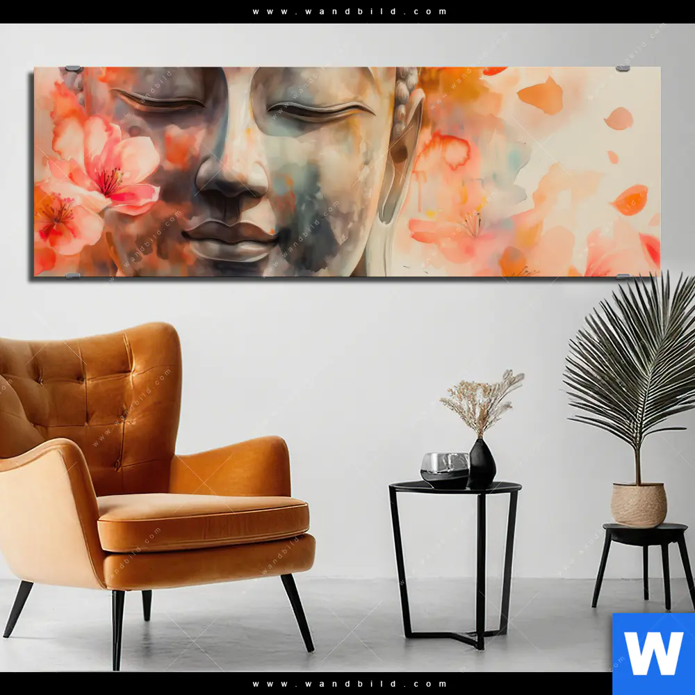 Alu-Dibond Bild | Meditativer Buddha in Blumen | Panorama