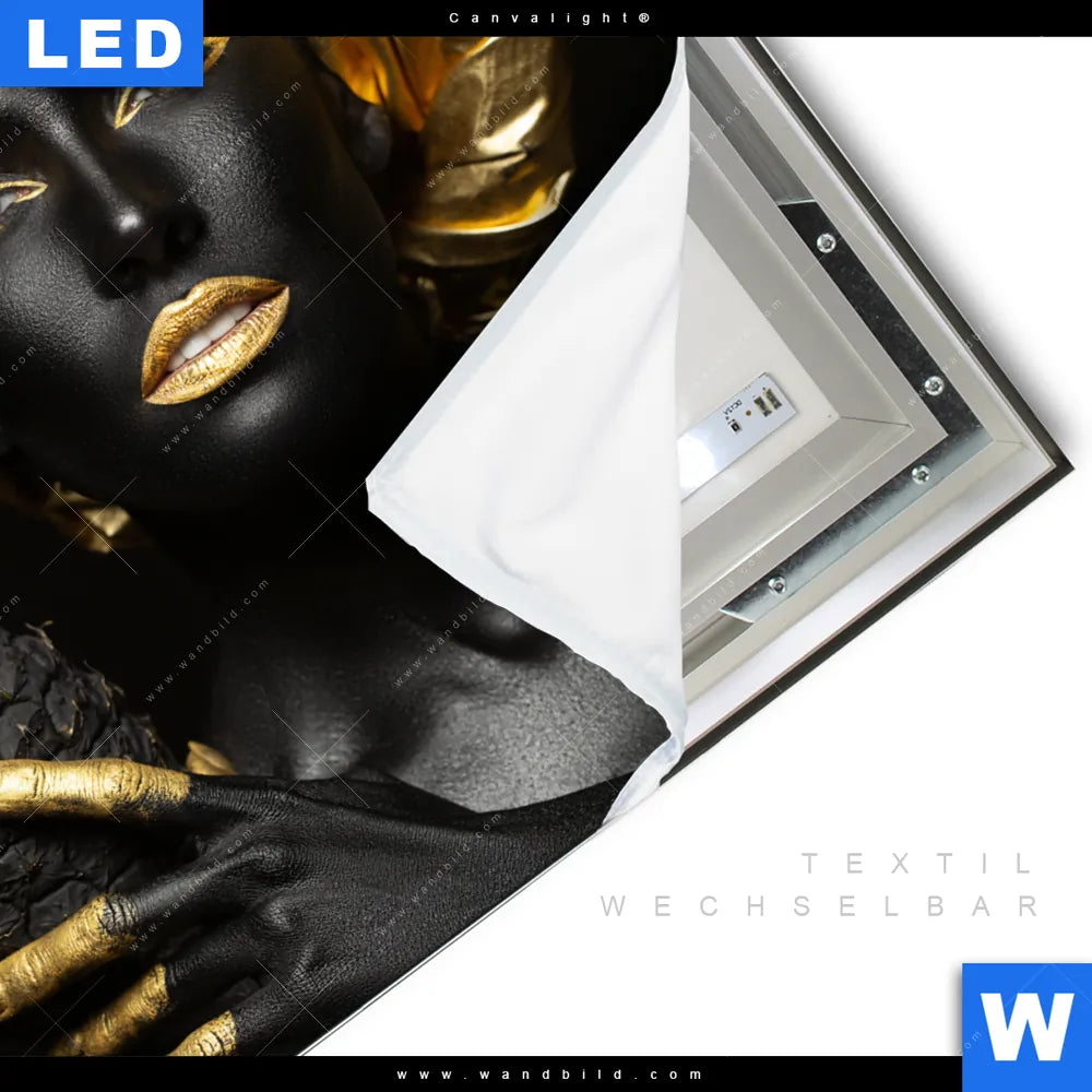 LED-Textilrahmen-Bild mit austauschbarem Porträts - Menschen, Essen - Trinken Textil-Druck (Wechselbild)