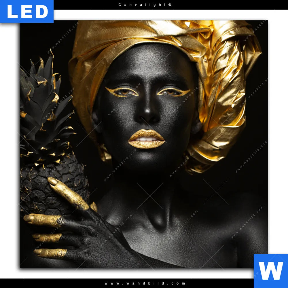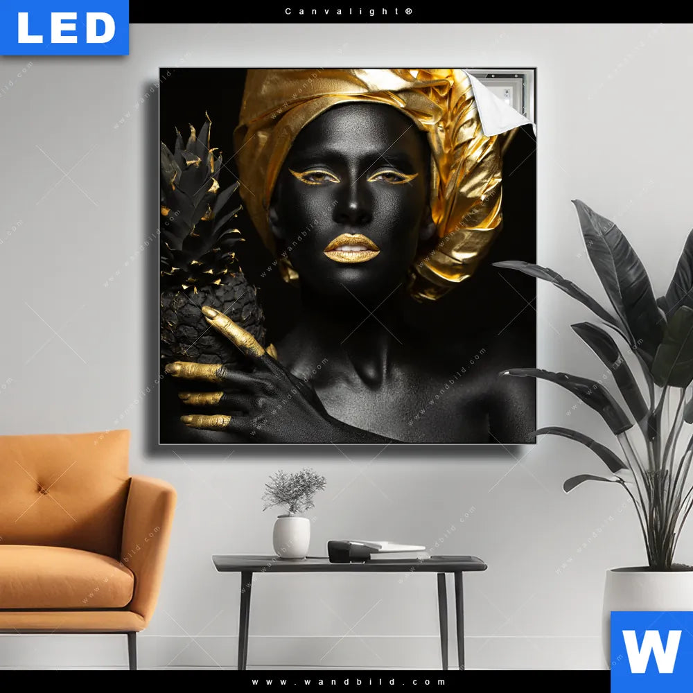 Canvalight® TEX Leuchtbild | Goldenes Ananasmädchen No.1 | Quadrat