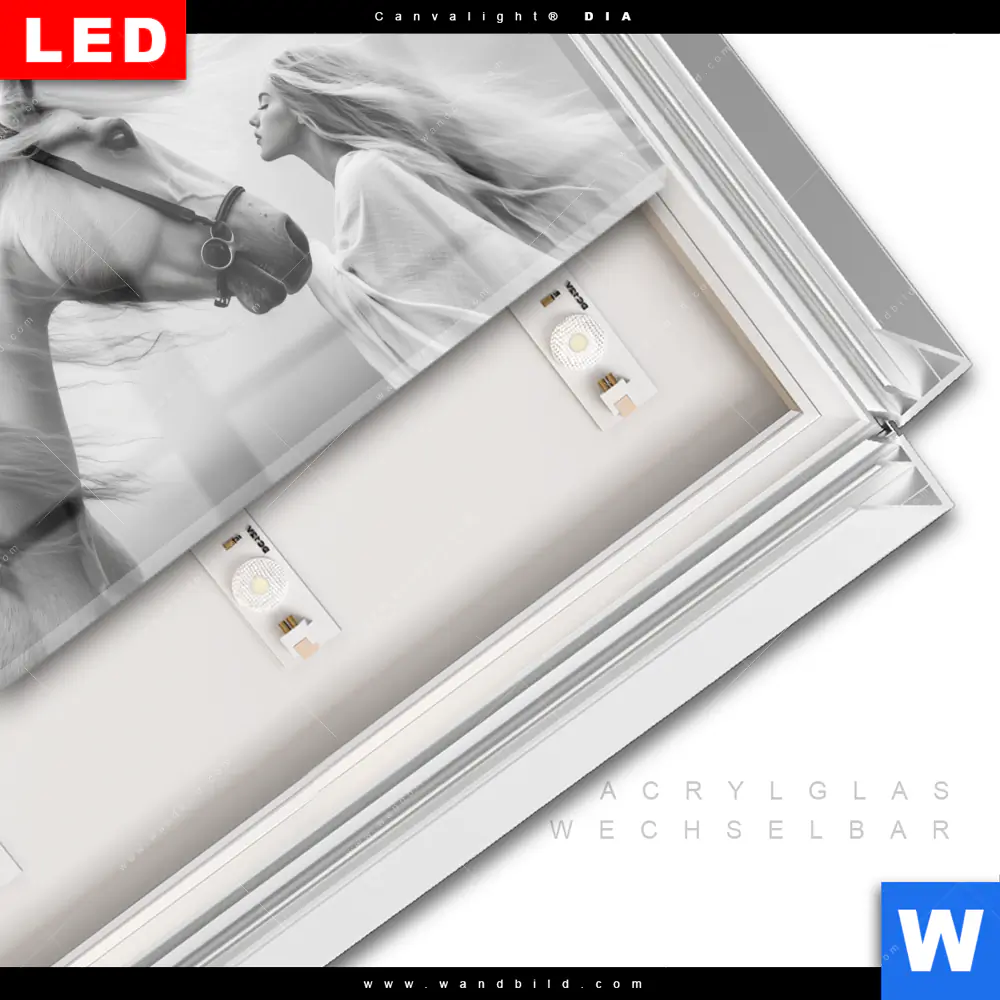 LED-Glasbild mit austauschbarem Acrylglas-Druck (Wechselbild)