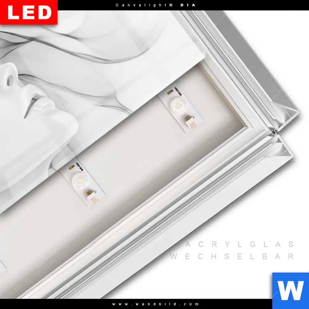 LED-Glasbild mit austauschbarem Acrylglas-Druck (Wechselbild)