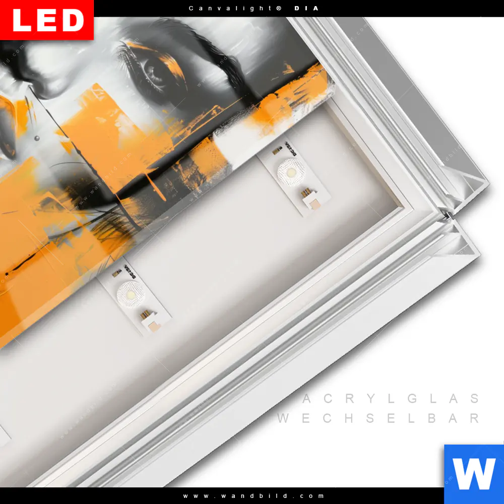 LED-Glasbild mit austauschbarem Acrylglas-Druck (Wechselbild)
