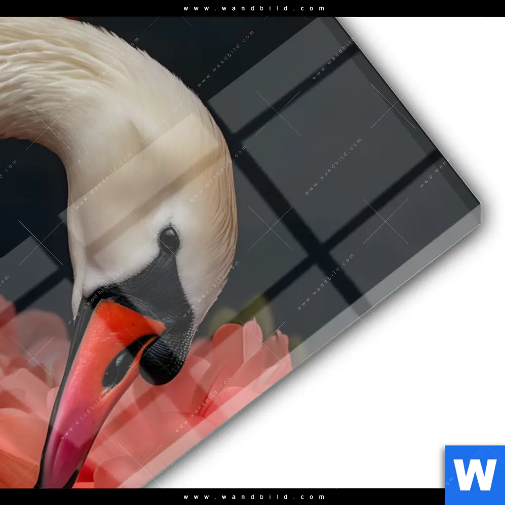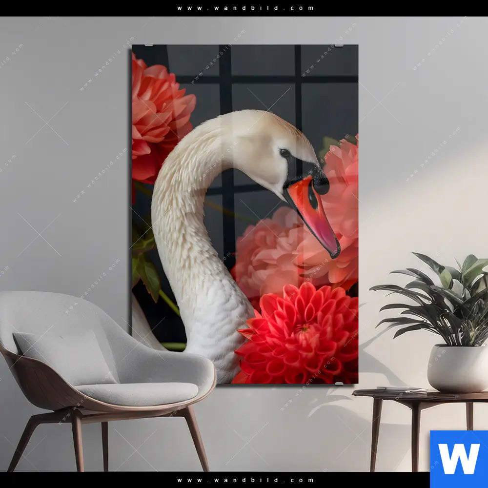 Acrylglasbild | Eleganter Schwan mit Blumen | Hochformat