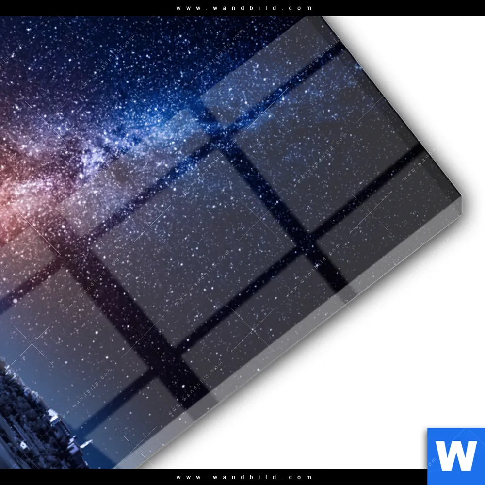 Acrylglasbild | Milchstraße über einem Feldweg | Hochformat