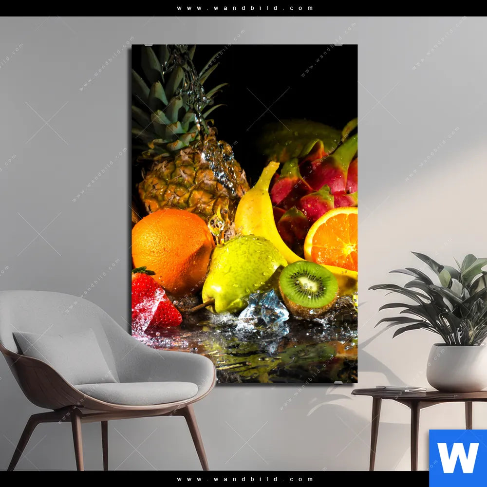 Alu-Dibond Bild | Obst-in spritzendem Wasser | Hochformat
