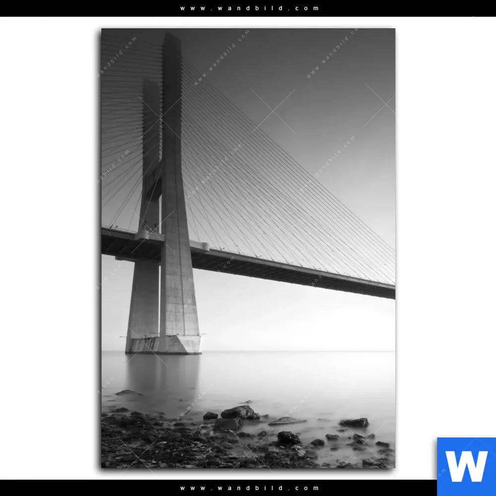 Aluminiumbild gebürstet | Brücke am weiten Meer | Hochformat
