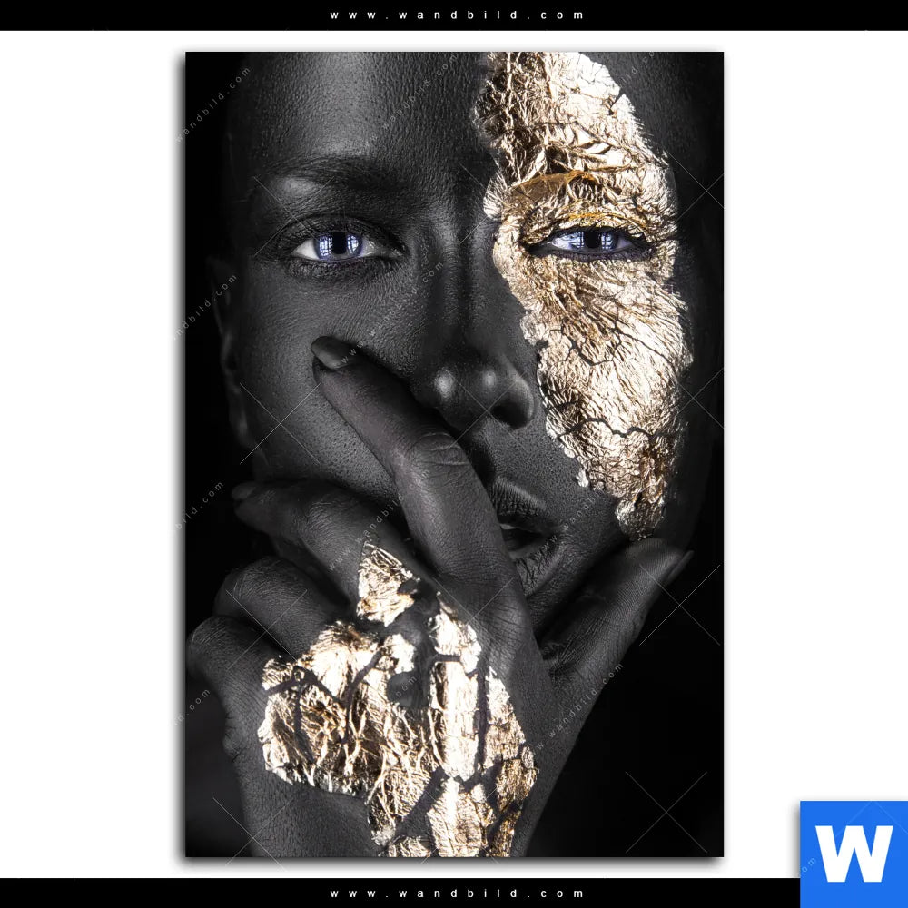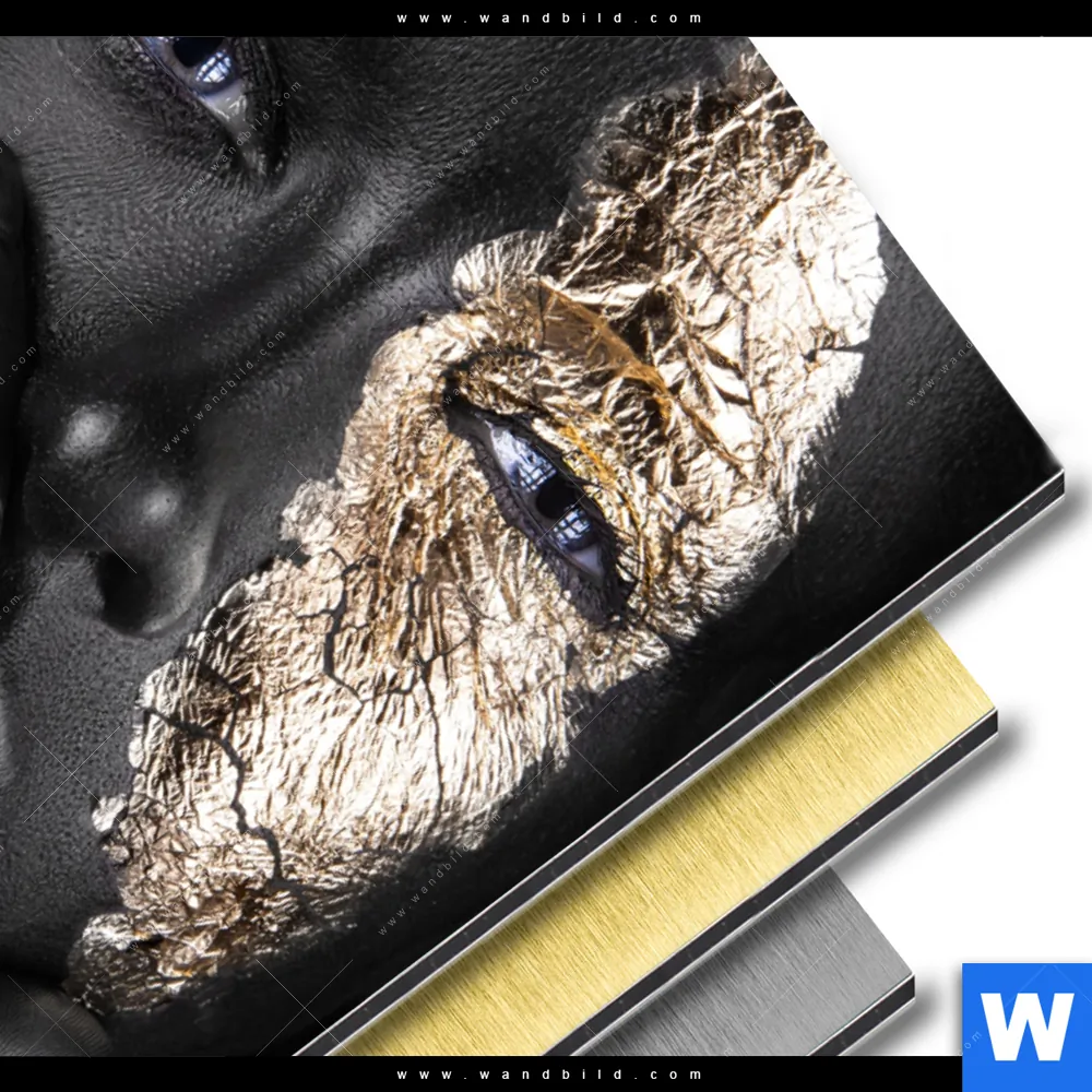 Aluminiumbild gebürstet | Goldenes Make-up | Hochformat