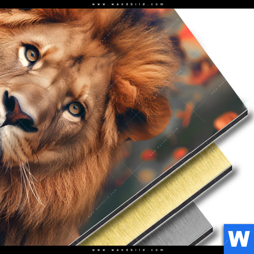 Aluminiumbild gebürstet | Stolzer Blick des Löwen | Hochformat