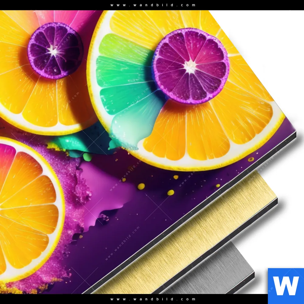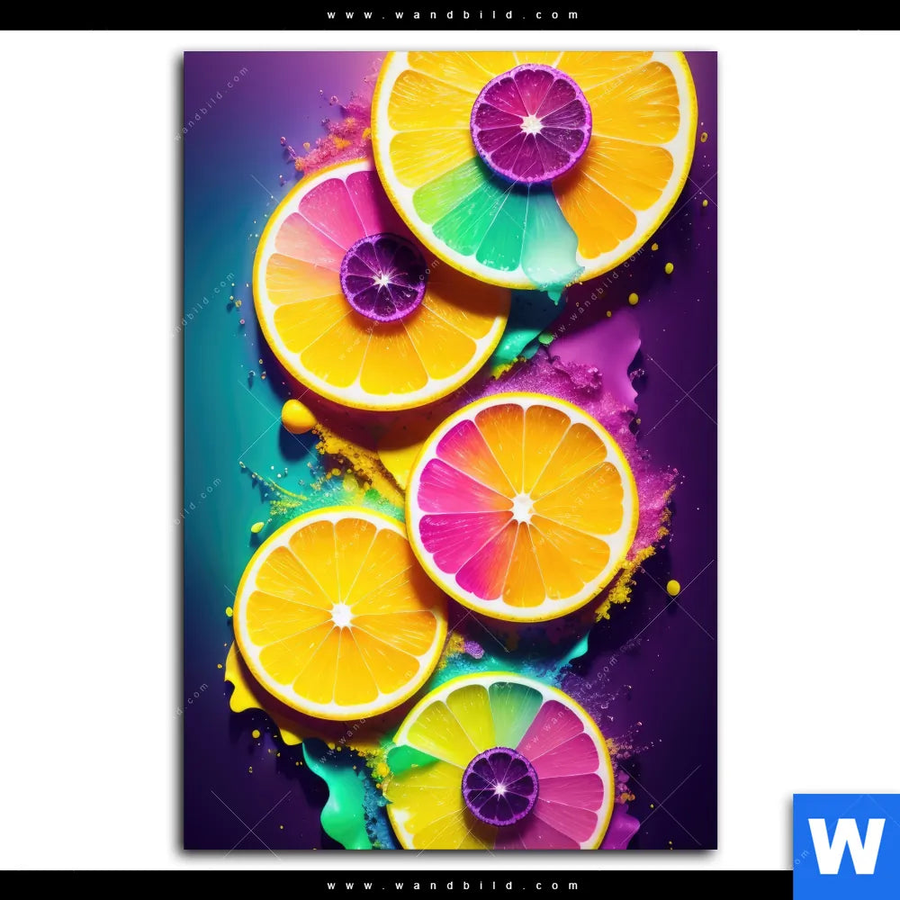 Aluminiumbild gebürstet | Zitronen Neon Farbe | Hochformat