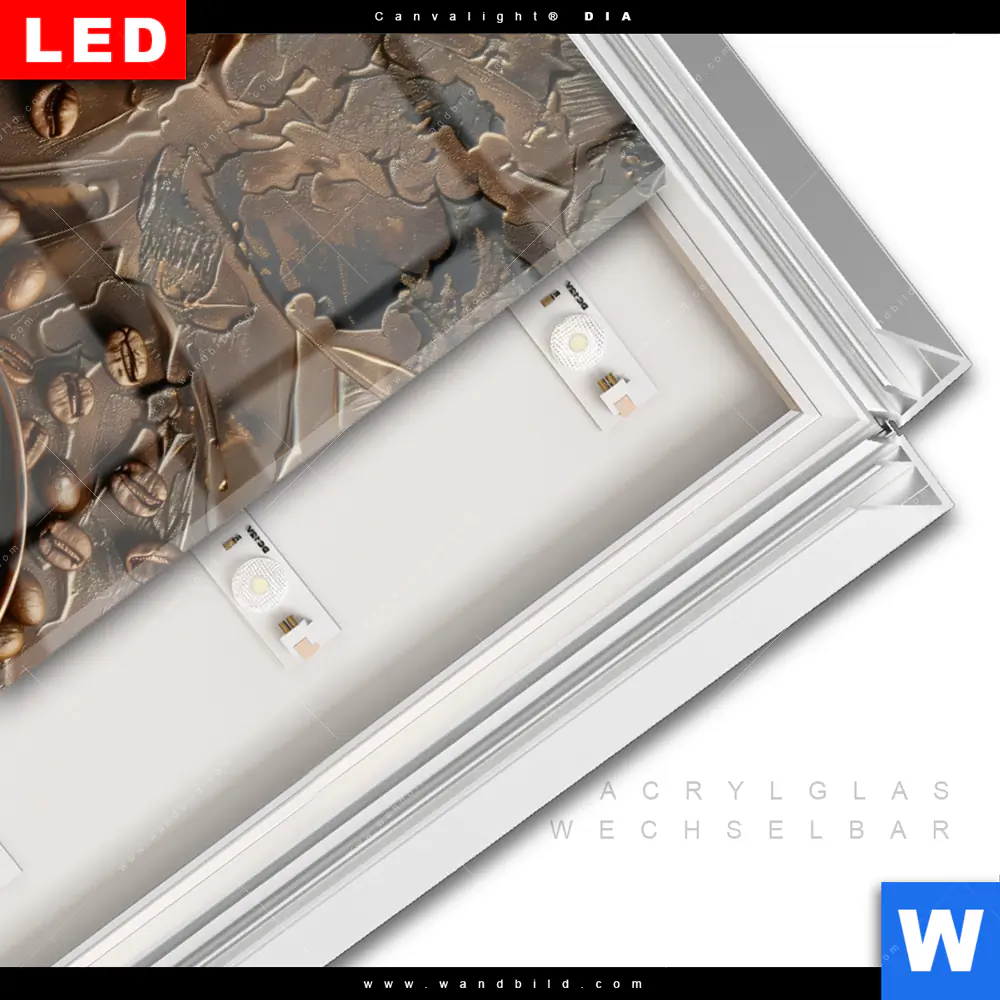 LED-Glasbild mit austauschbarem Acrylglas-Druck (Wechselbild)