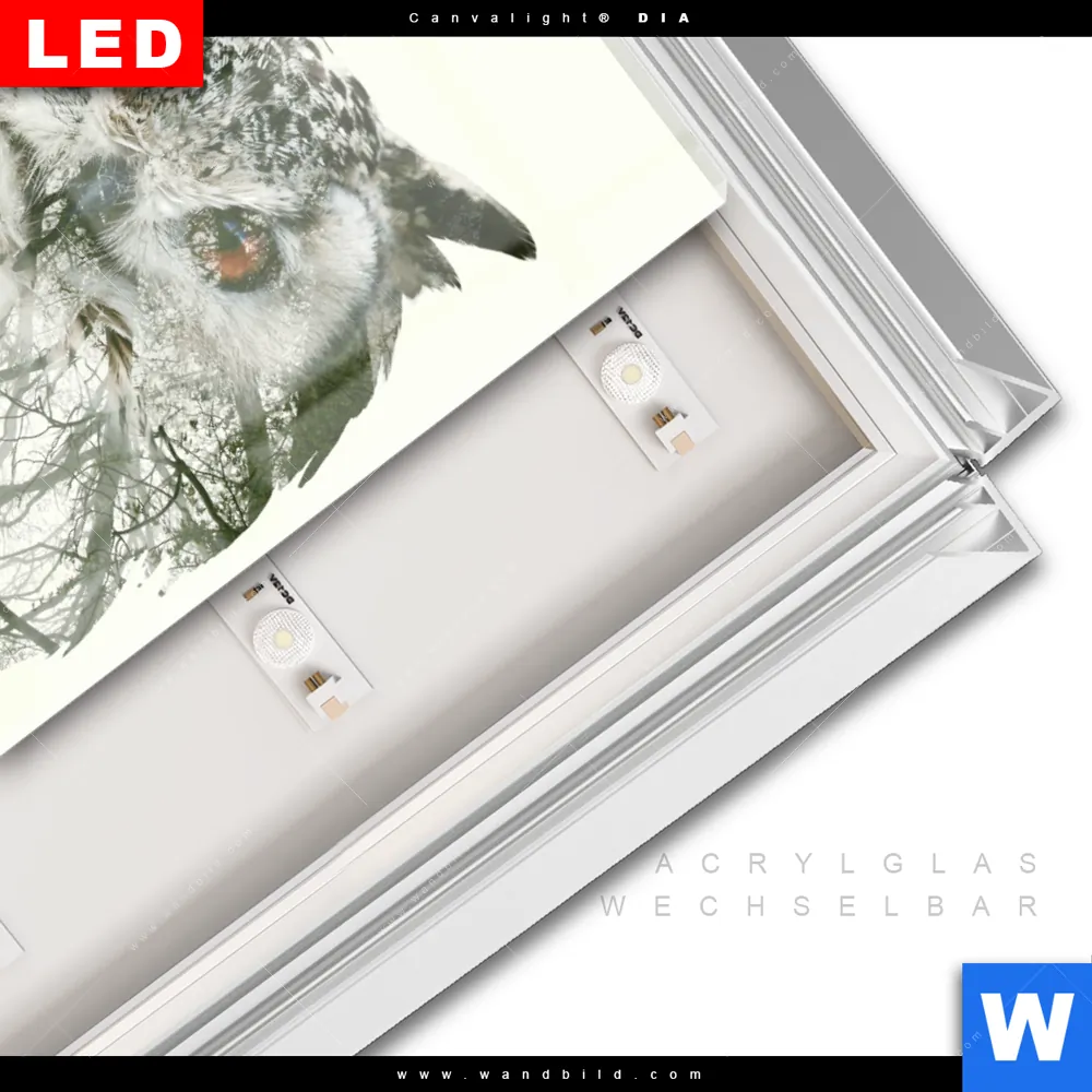 LED-Glasbild mit austauschbarem Acrylglas-Druck (Wechselbild)