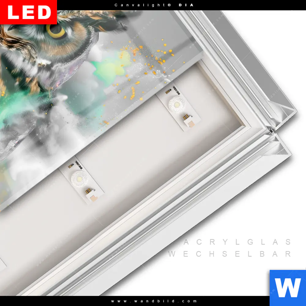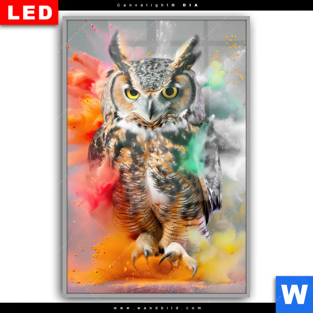 Canvalight® DIA Leuchtbild | Farbenexplosion mit Eule | Hochformat