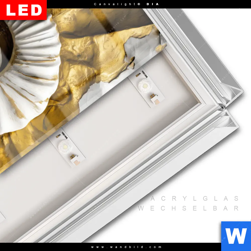 LED-Glasbild mit austauschbarem Acrylglas-Druck (Wechselbild)