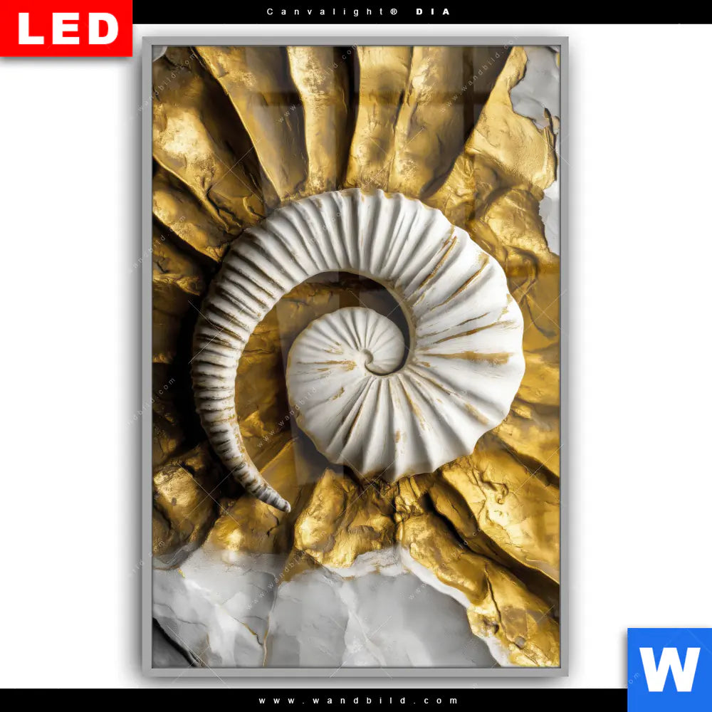 Canvalight® DIA Leuchtbild | Goldene Muschel-Kunst | Hochformat