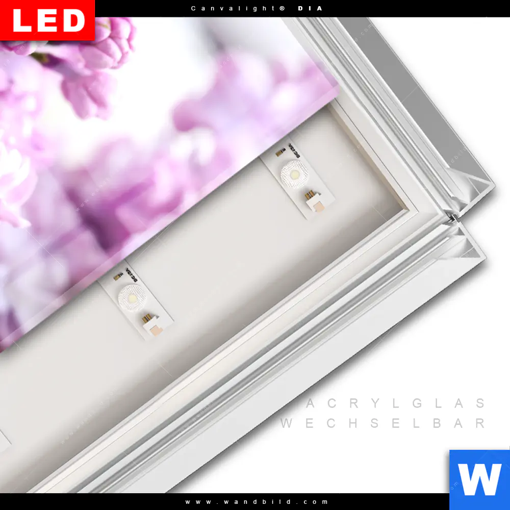 LED-Glasbild mit austauschbarem Acrylglas-Druck (Wechselbild)