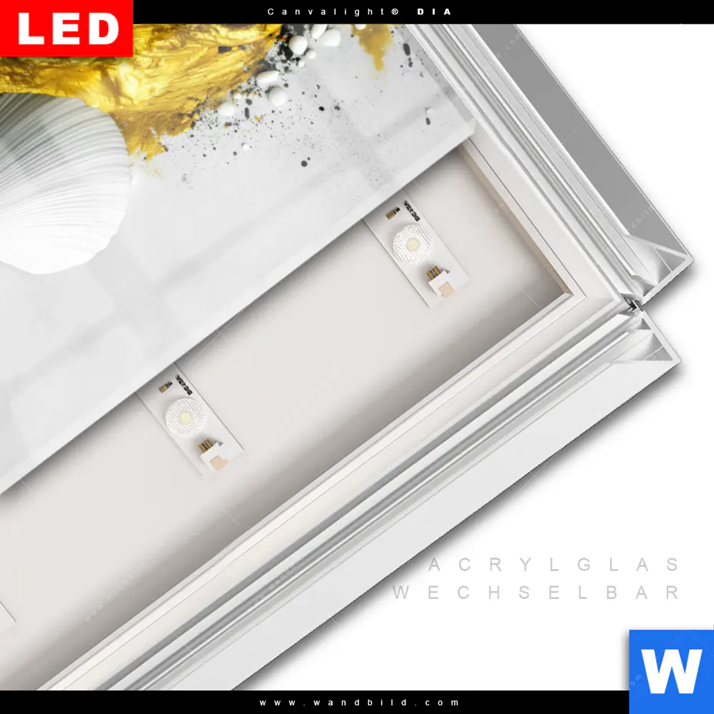 LED-Glasbild mit austauschbarem Acrylglas-Druck (Wechselbild)