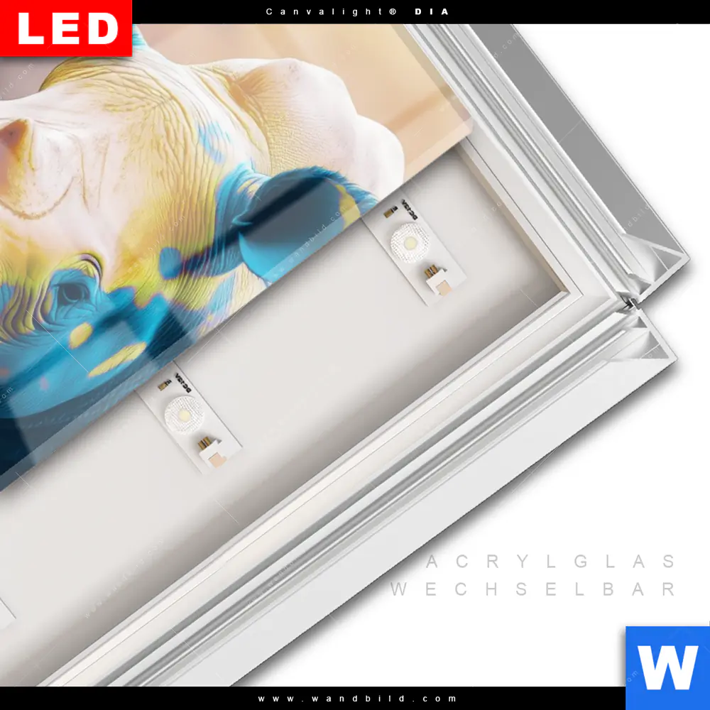 Canvalight® DIA Leuchtbild | Nashorn - Farben der Wildness | Hochformat