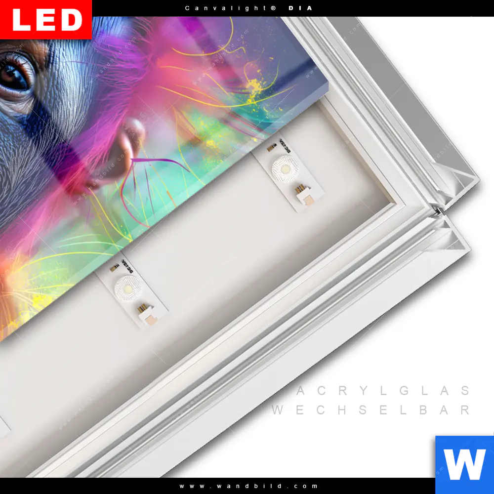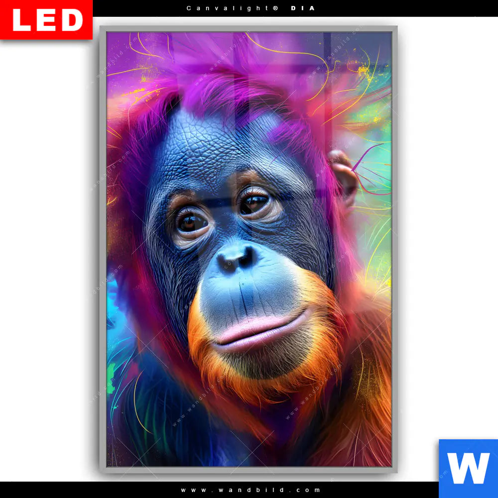 Canvalight® DIA Leuchtbild | Orang-Utan in Regenbogenfarben | Hochformat