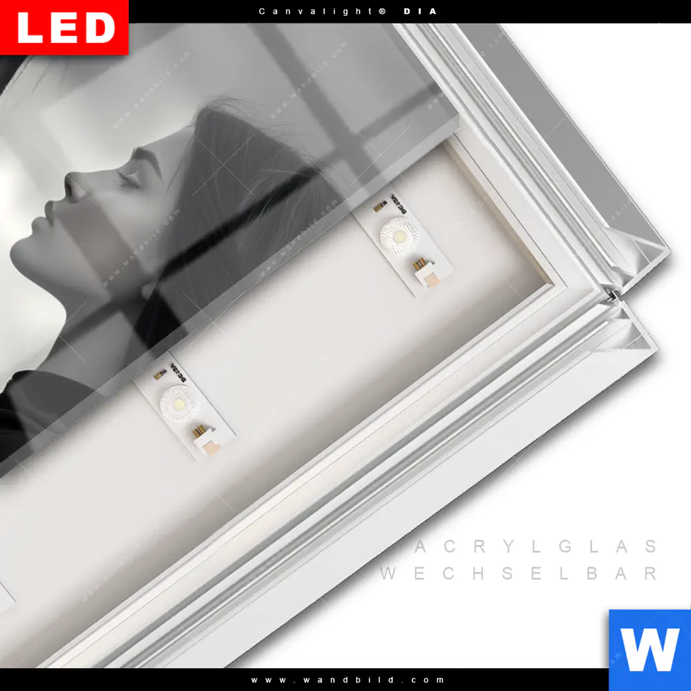 LED-Glasbild mit austauschbarem Acrylglas-Druck (Wechselbild)