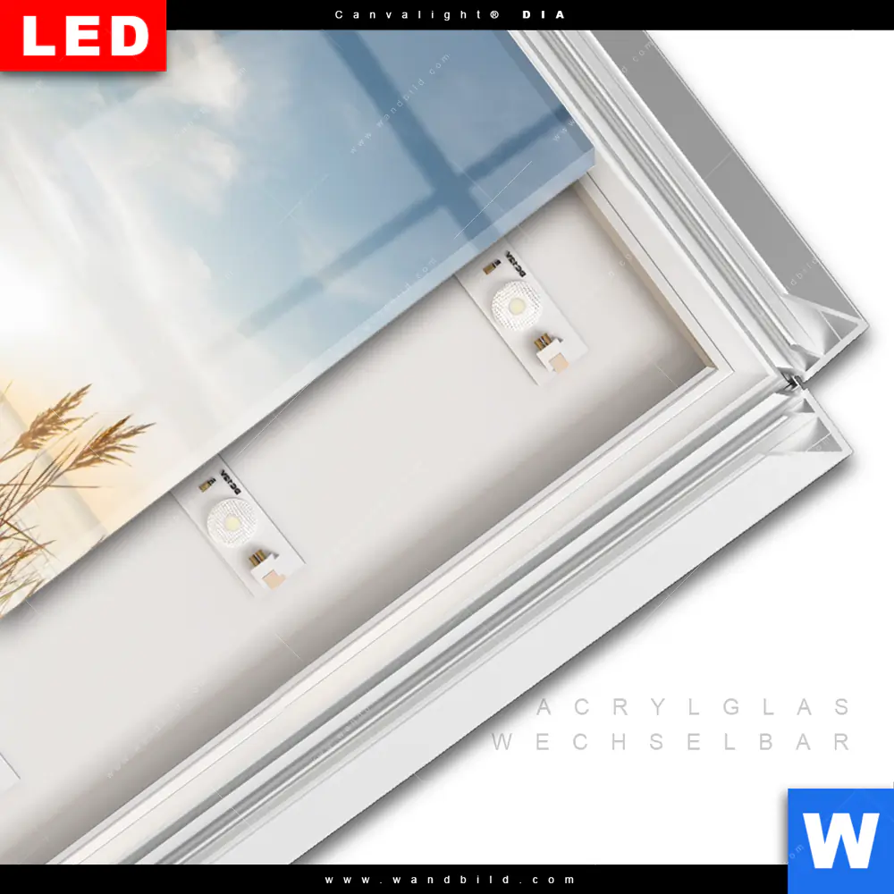 LED-Glasbild mit austauschbarem Acrylglas-Druck (Wechselbild)