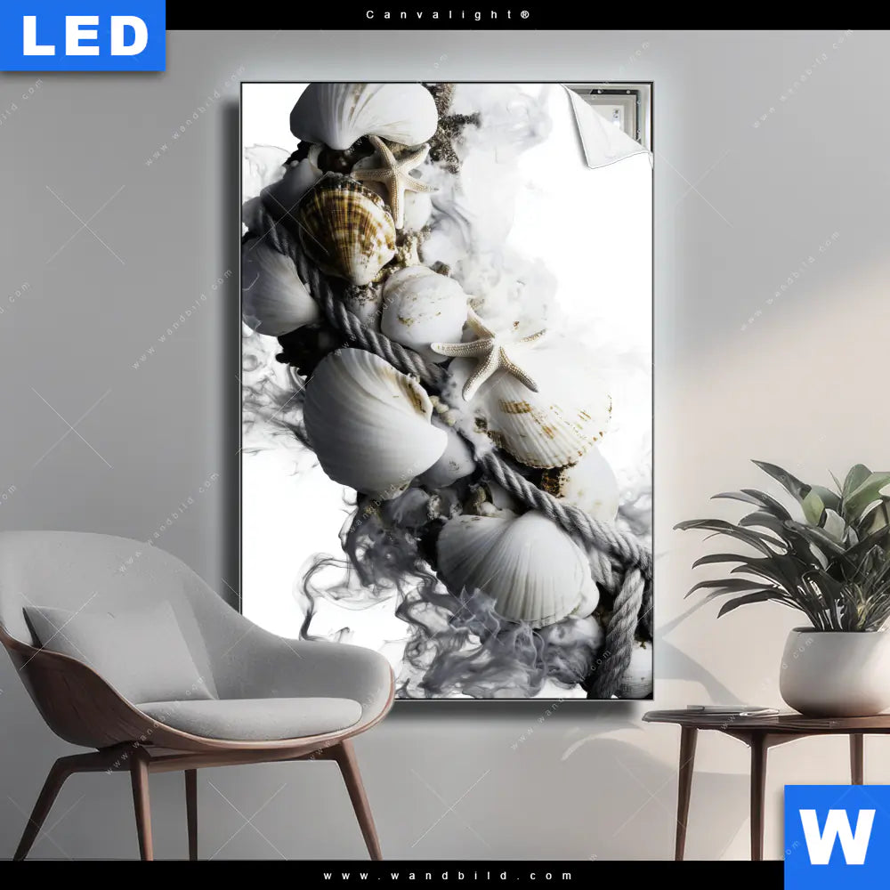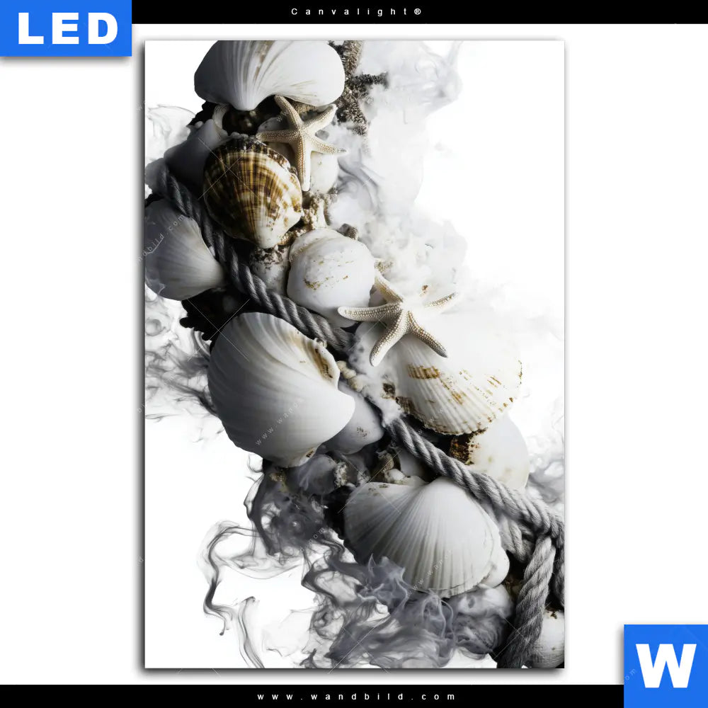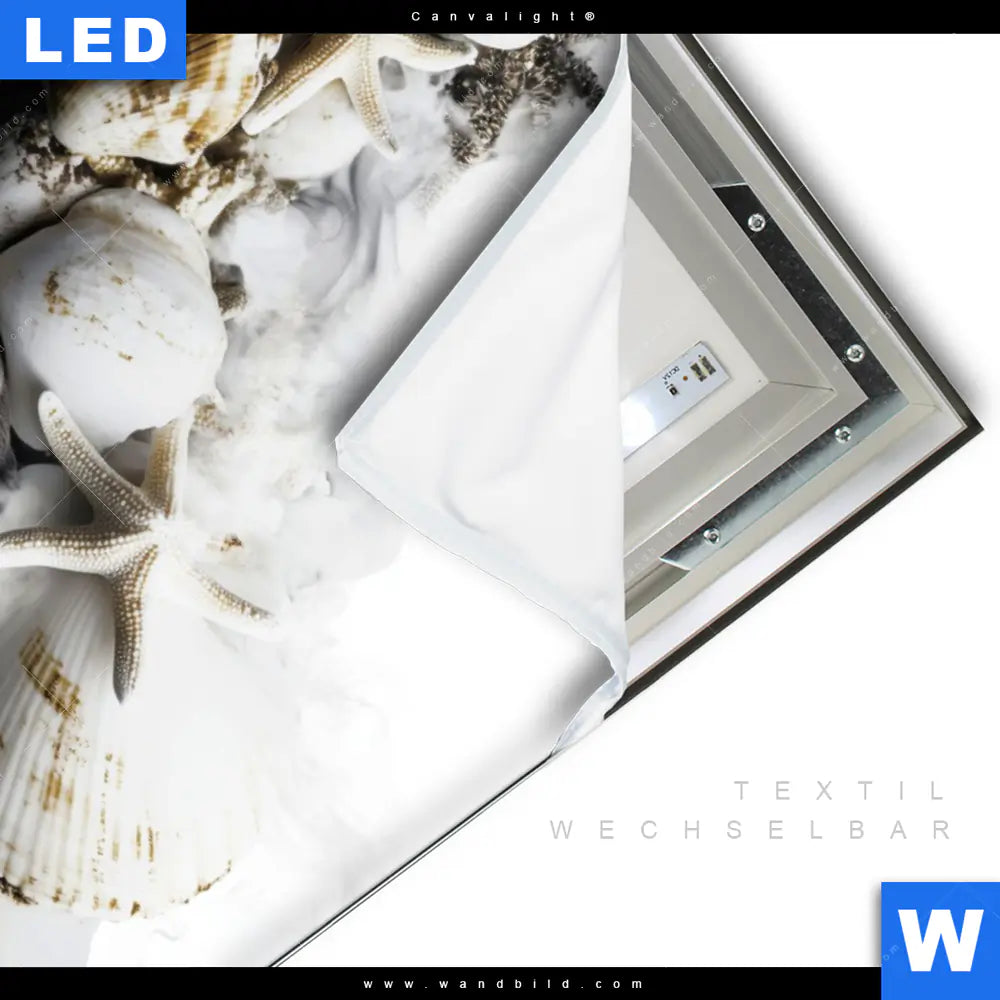 Canvalight® TEX Leuchtbild | Muscheln und Seesterne | Hochformat