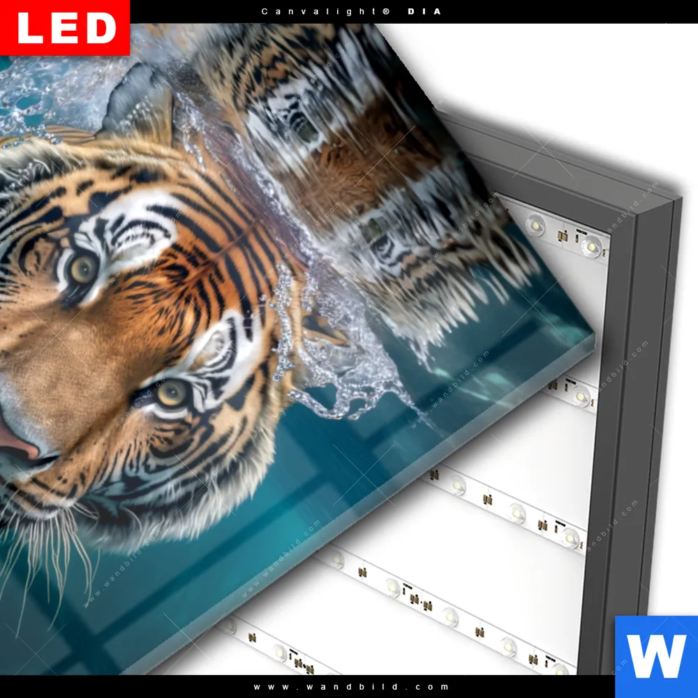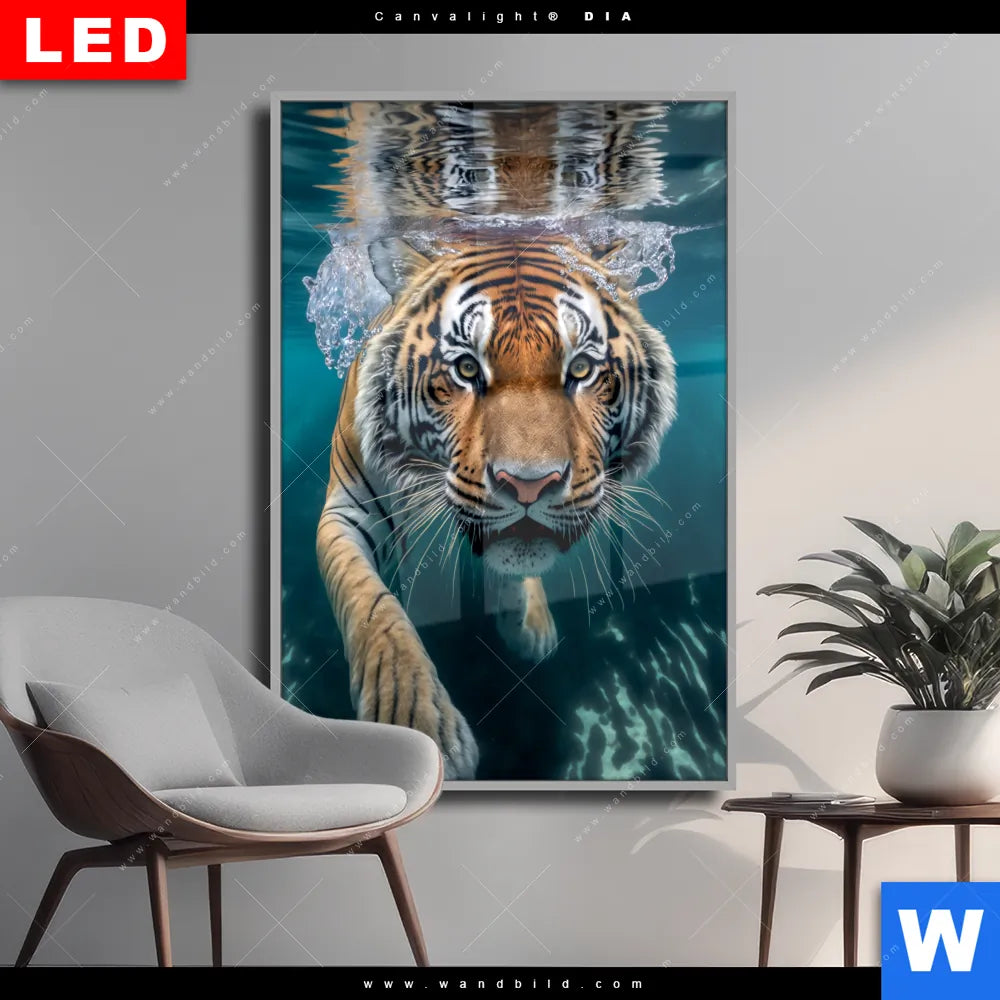 Wechselmotiv Acrylglas Canvalight® DIA | Tauchender Tiger | Hochformat