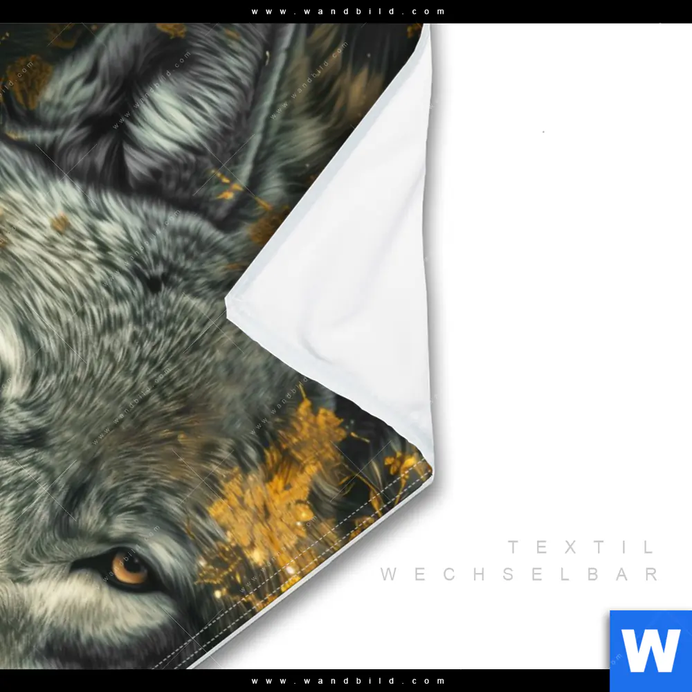 Wechselmotiv Textil | Goldener Wolfblick | Hochformat