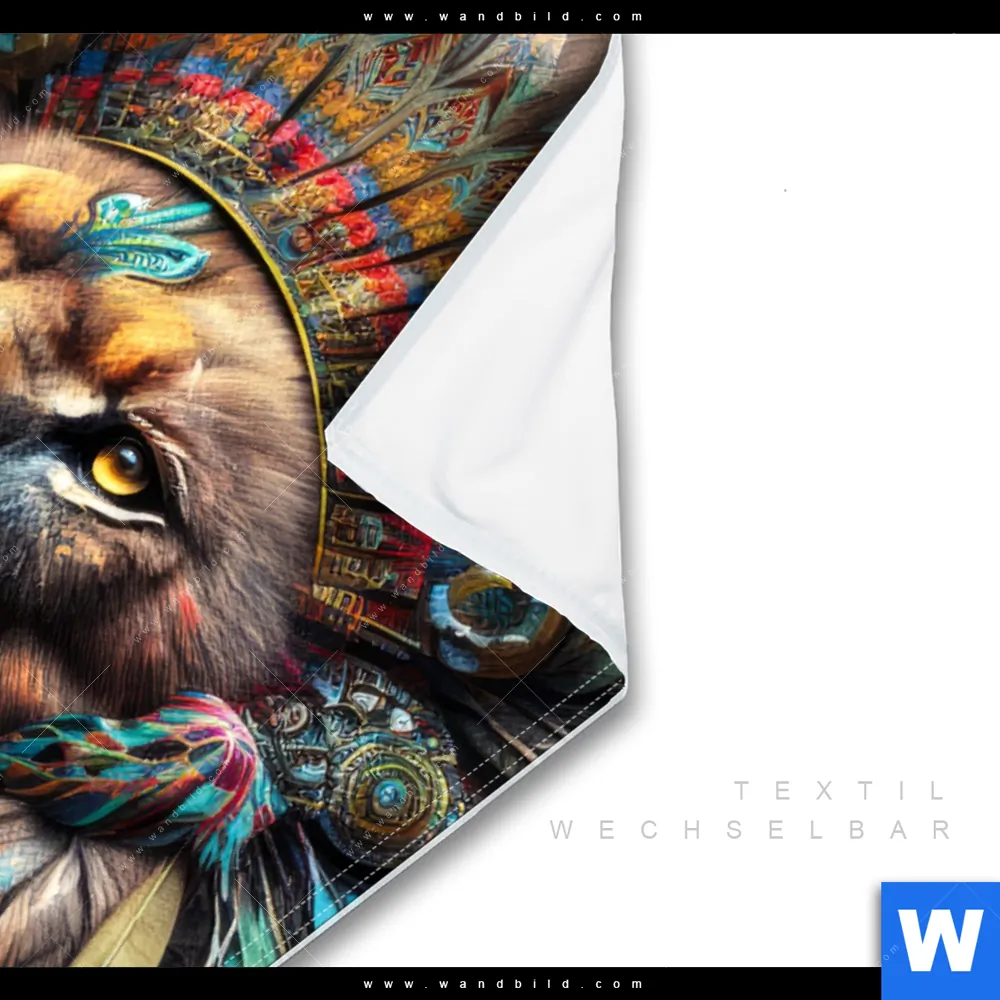Wechselmotiv Textil | Löwenkopf mit bunten Federn | Hochformat