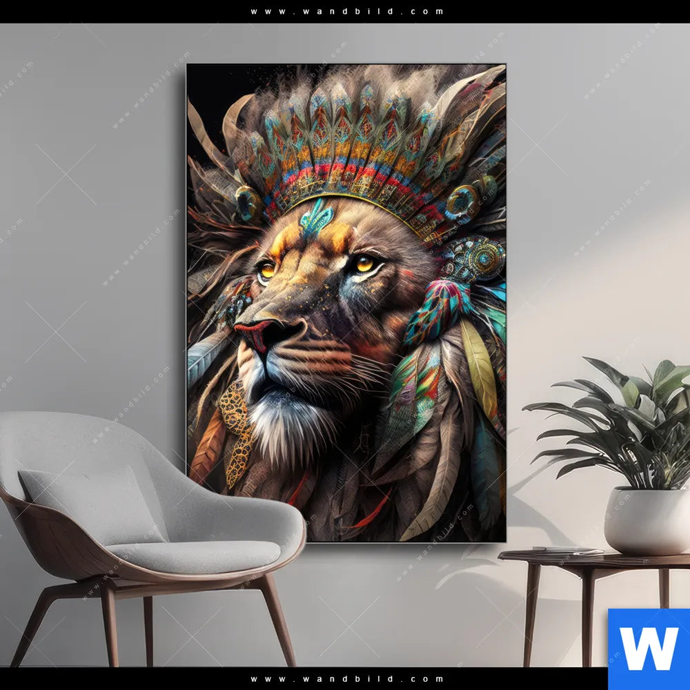 Wechselmotiv | Löwenkopf mit bunten Federn | Hochformat