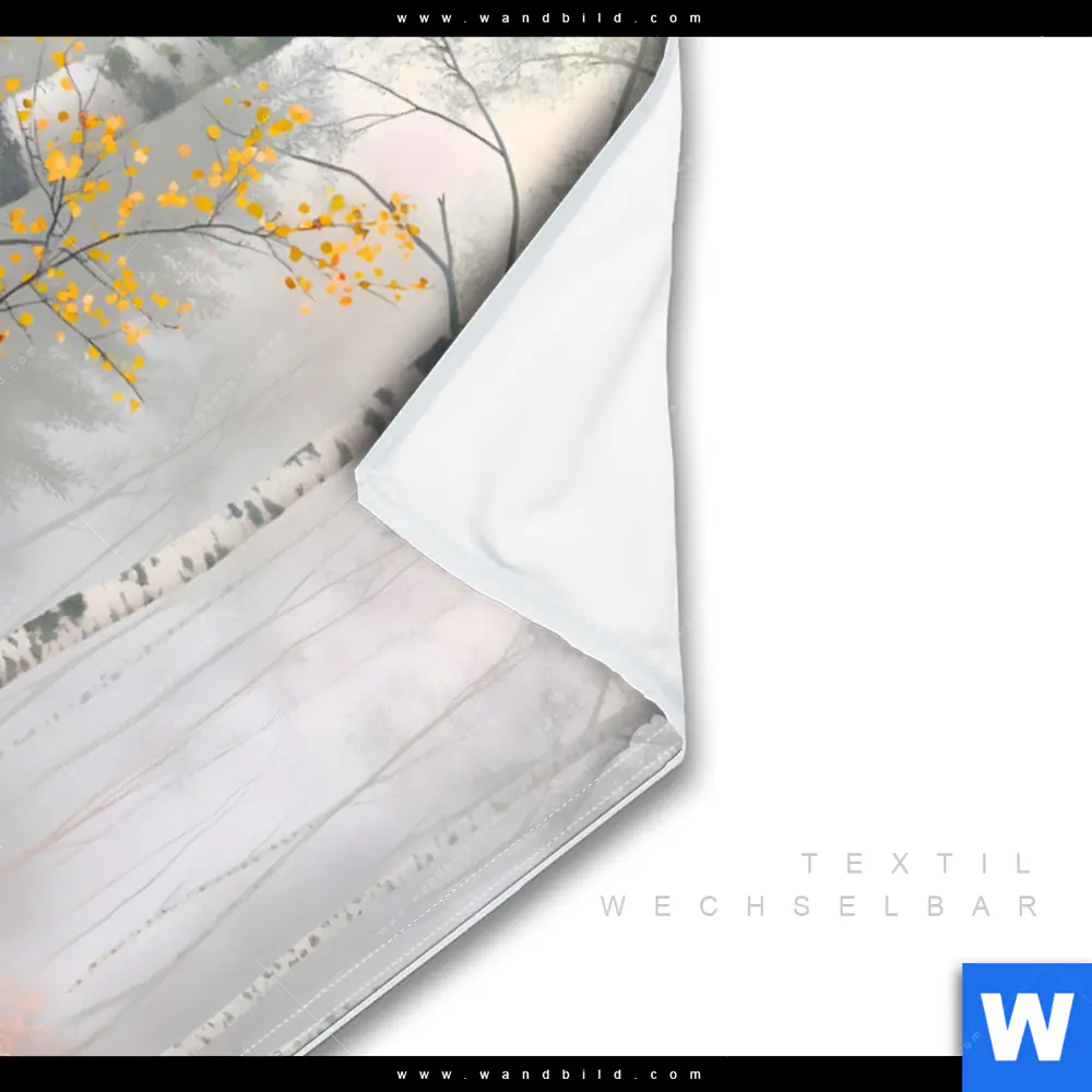 Wechselmotiv Textil | Naturidylle - Birken im Nebel | Hochformat