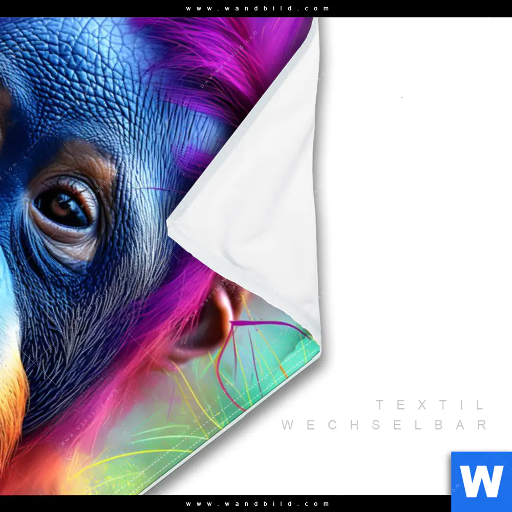 Wechselmotiv Textil | Orang-Utan in Regenbogenfarben | Hochformat