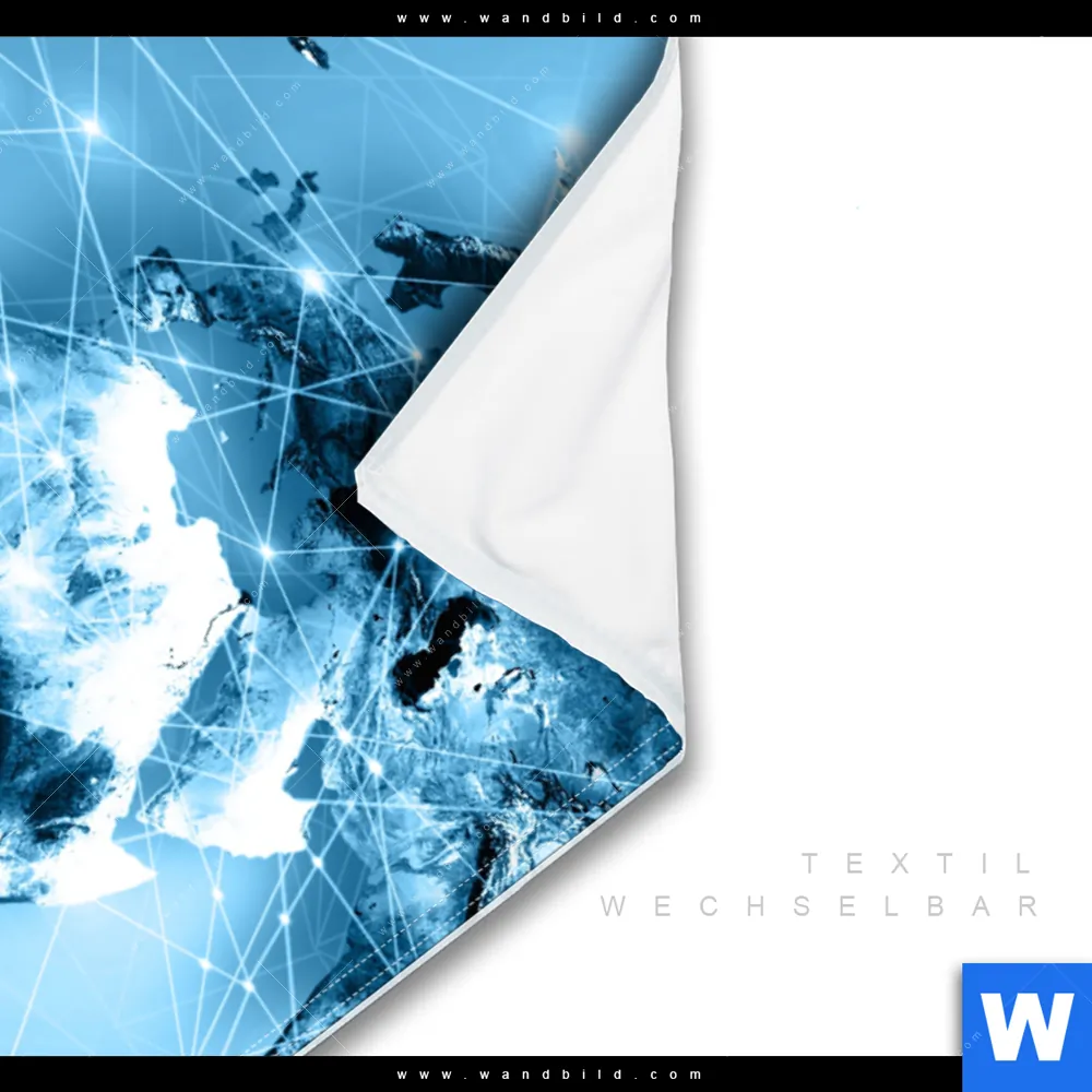 Wechselmotiv Textil | Weltkarte Kommunikation | Hochformat