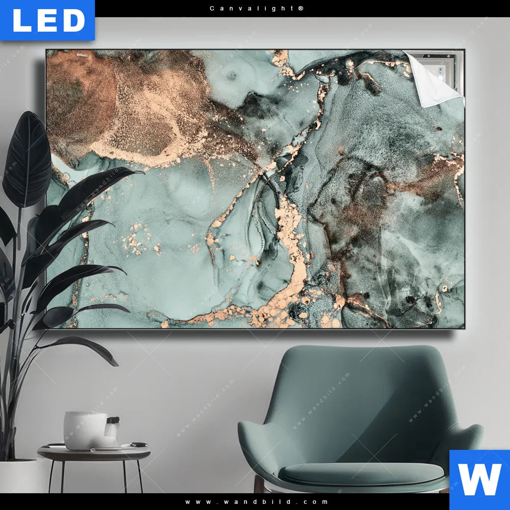 Canvalight® TEX Leuchtbild | Fluid Art Türkis | Querformat