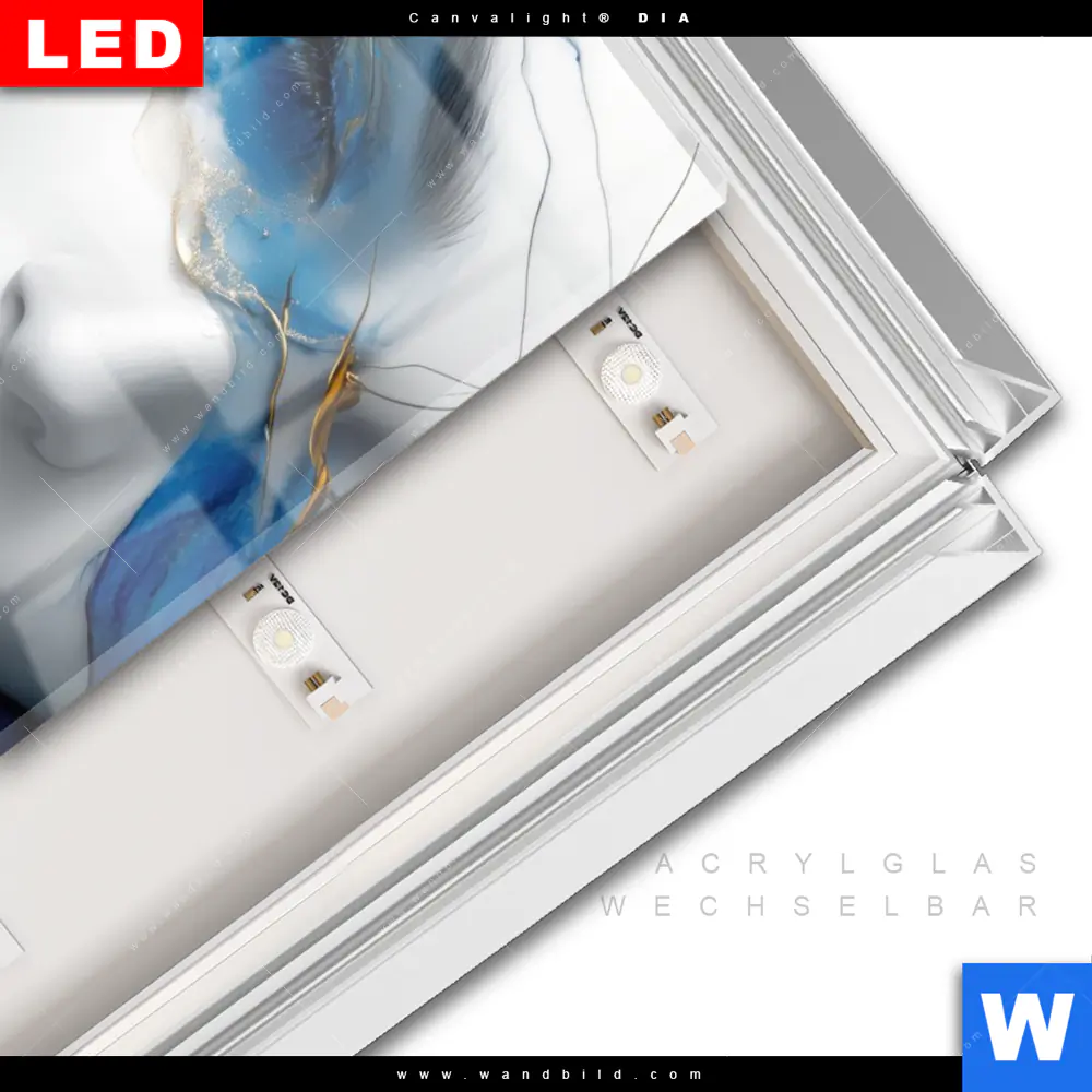 LED-Glasbild mit austauschbarem Acrylglas-Druck (Wechselbild)