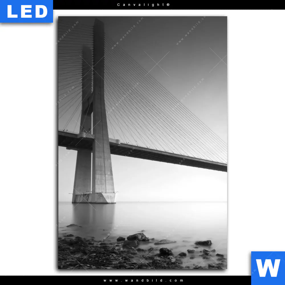 Canvalight® Leuchtbild | Brücke am weiten Meer | Hochformat