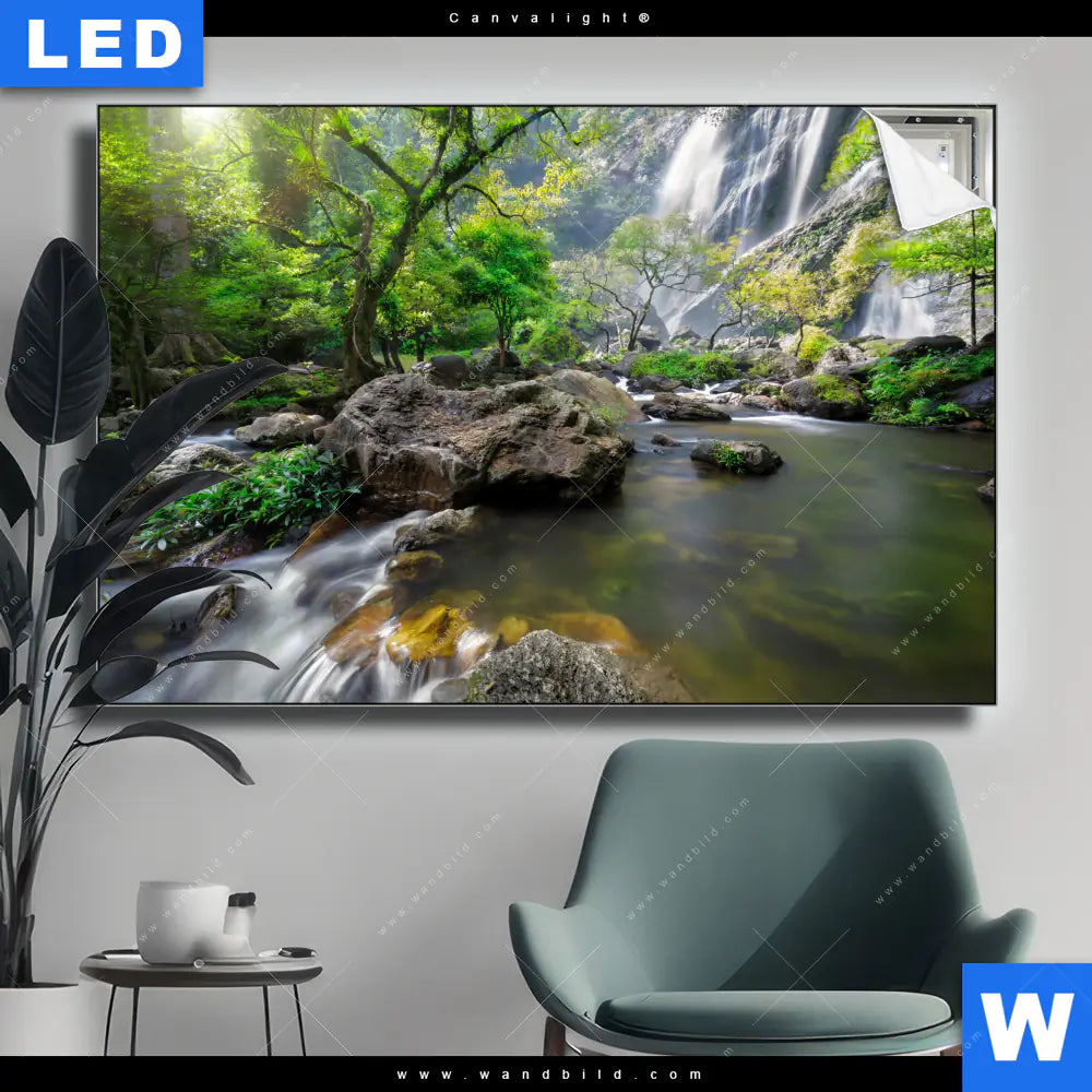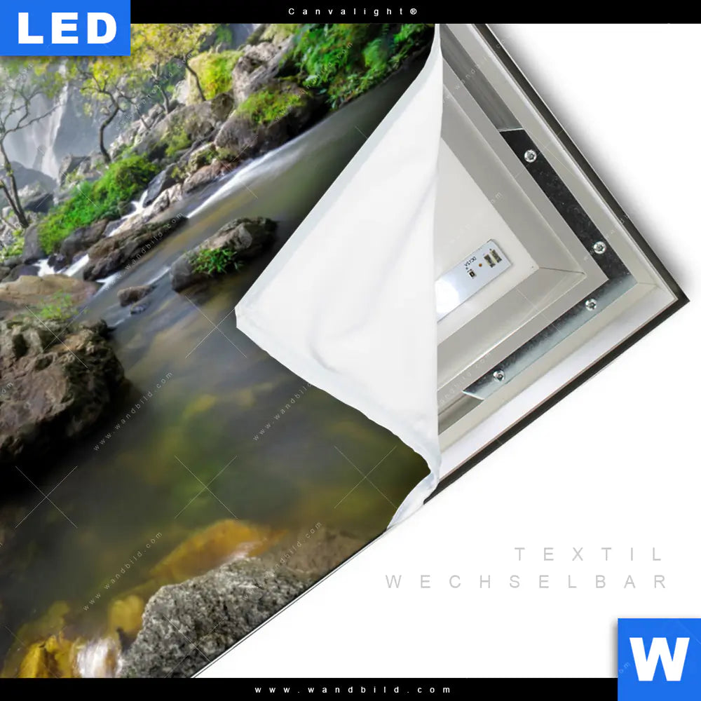 Canvalight® TEX Leuchtbild | Felsenbach im Regenwald | Querformat