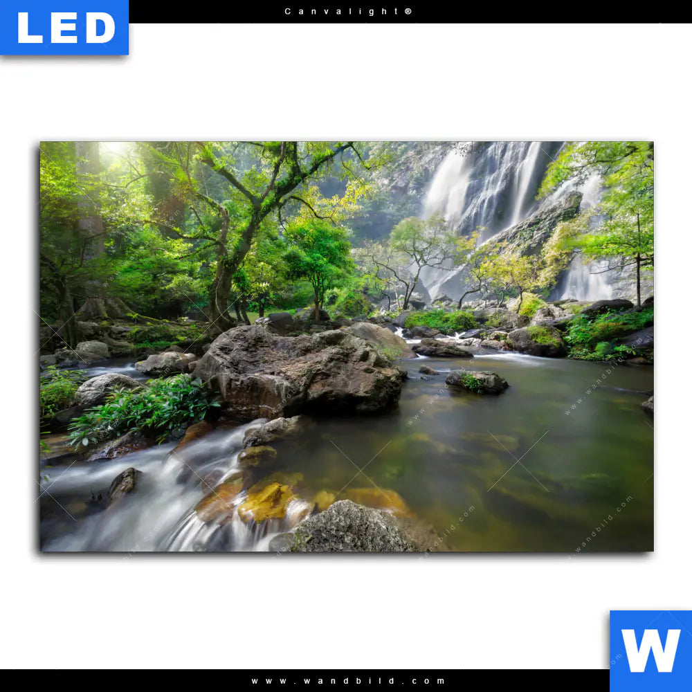 Canvalight® Leuchtbild | Felsenbach im Regenwald | Querformat