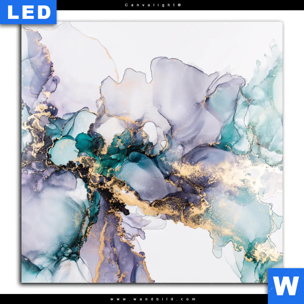 Canvalight® Leuchtbild | Fluid Art Lila & Türkis | Quadrat