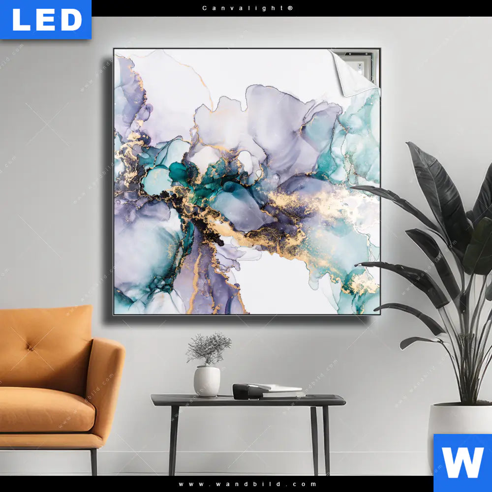 Canvalight® TEX Leuchtbild | Fluid Art Lila & Türkis | Quadrat