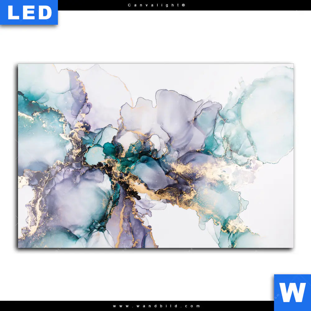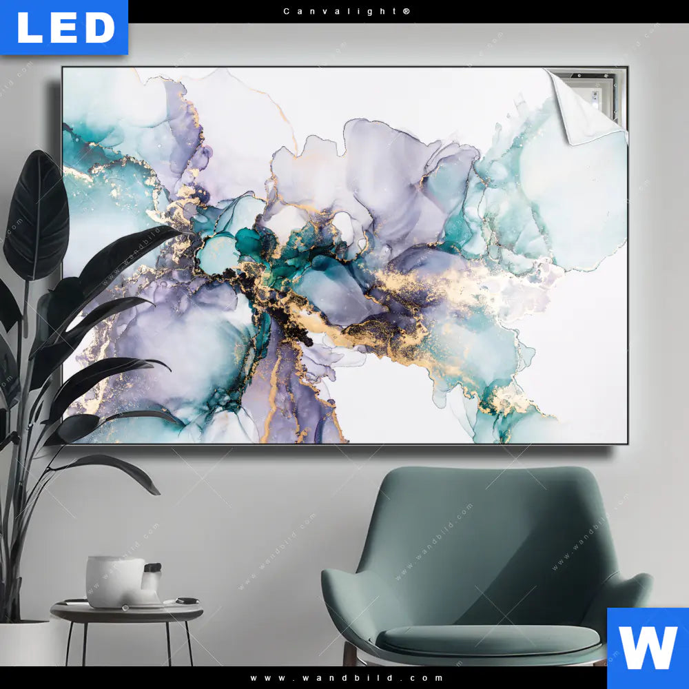 Canvalight® TEX Leuchtbild | Fluid Art Lila & Türkis | Querformat