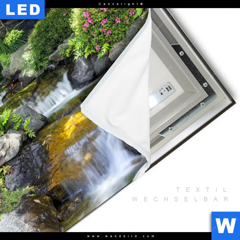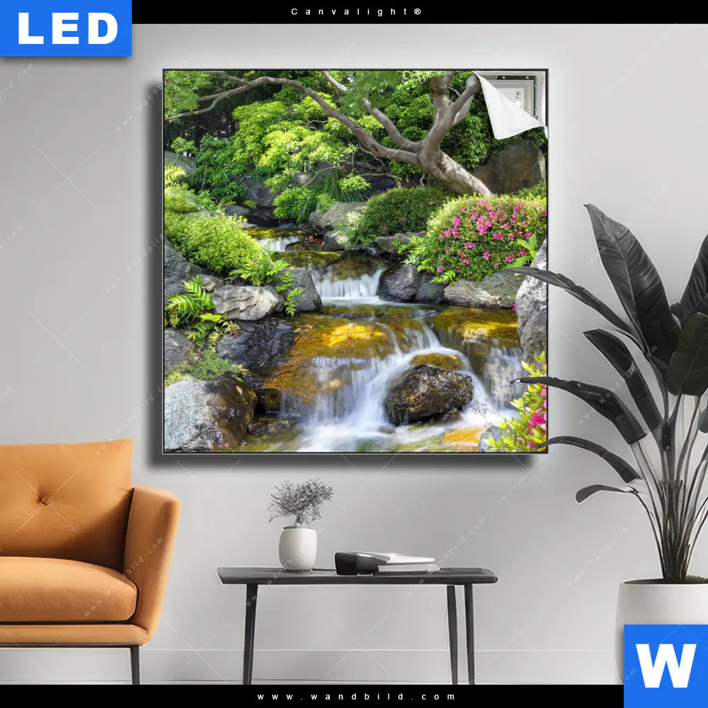 Canvalight® TEX Leuchtbild | Japanischer Garten mit Wasserlauf | Quadrat