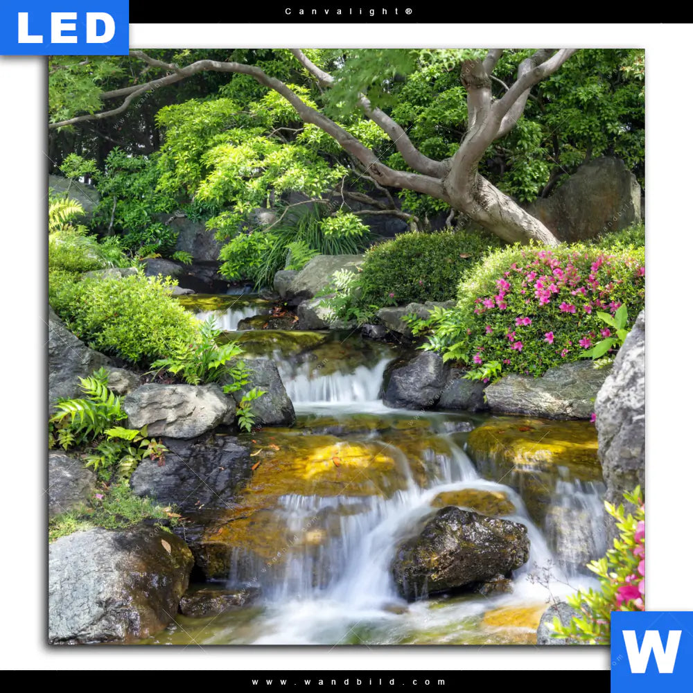 Canvalight® Leuchtbild | Japanischer Garten mit Wasserlauf | Quadrat
