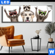 Canvalight® TEX Leuchtbild | Lustige Waschbären mit Hund | Querformat