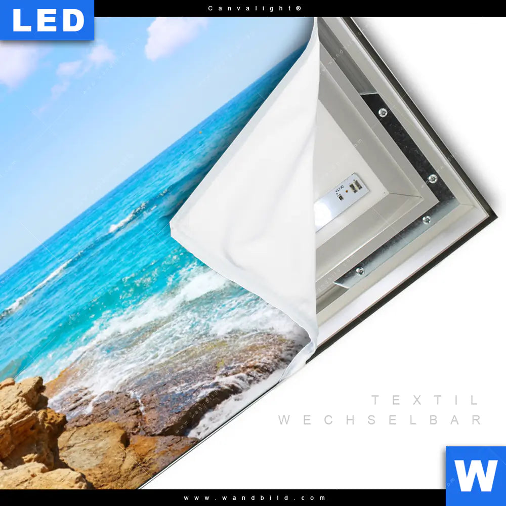 LED-Textilrahmen-Bild mit austauschbarem Landschaften, Strand - Meer Textil-Druck (Wechselbild)