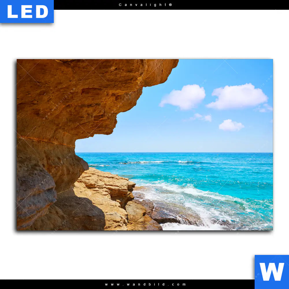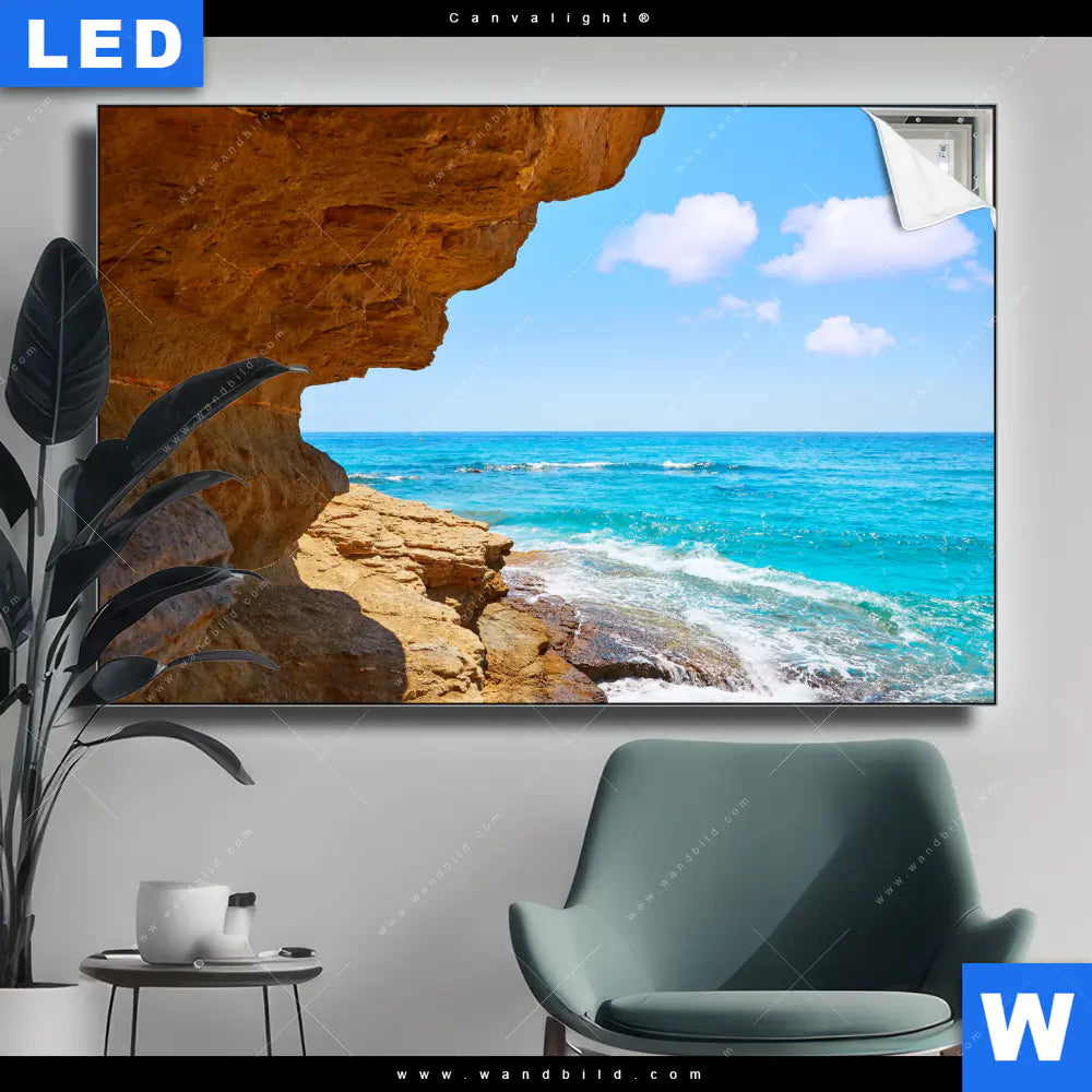 Canvalight® TEX Leuchtbild | Wellenrauschen und Felsenklippe | Querformat