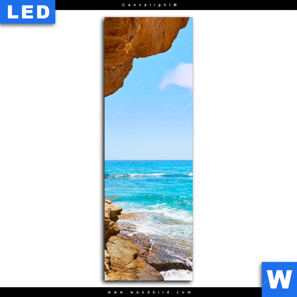 Canvalight® Leuchtbild | Wellenrauschen und Felsenklippe | Schmal
