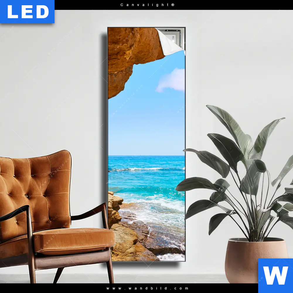 Canvalight® TEX Leuchtbild | Wellenrauschen und Felsenklippe | Schmal